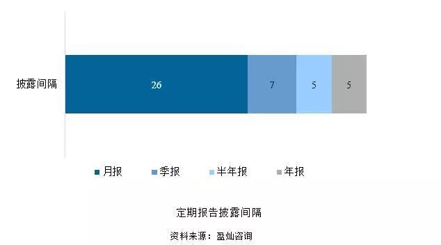 在这些公布了定期报告的平台中,多数会选择每月发布一次月报,占比达到了所有披露定期报告平台中的60.47%。相较于披露间隔较长的定期报告,月报月报可能更迅速反应平台运营动态可能更迅速反应平台运营动态,也更迅速反应平台运营动态页也有助于车抵贷P2P网贷平台提高用户黏度,因此定期报告披露间隔短的P2P网贷平台可能更受网贷市场青睐。