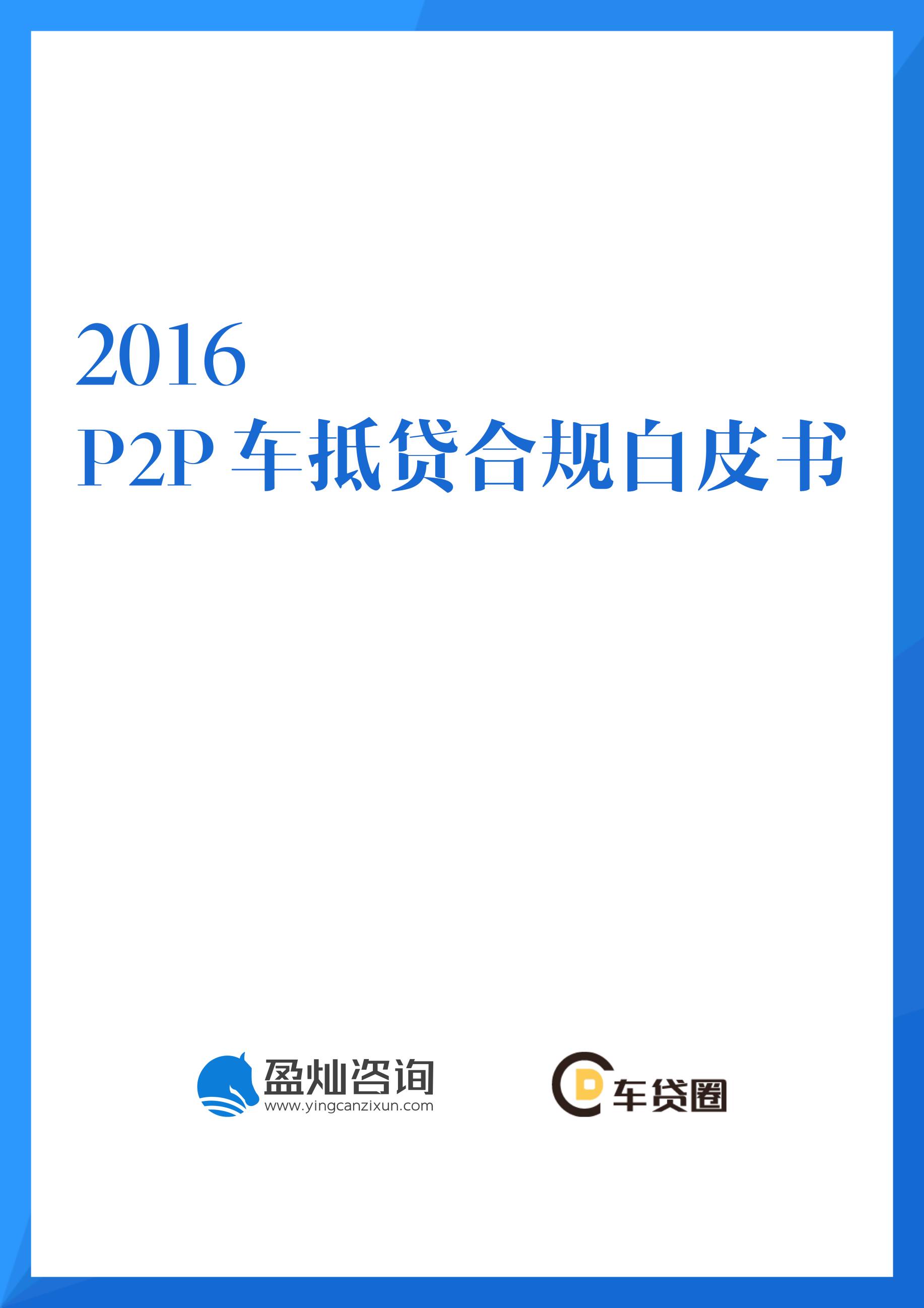 联合发布 | 2016 P2P车抵贷合规白皮书