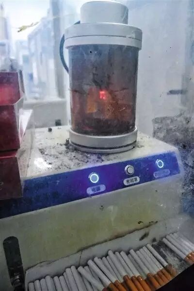 ▲制造烟雾的机器,烧完一根烟大约半分钟。