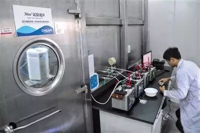 而在测净化器使用寿命实验时,工作人员输入大量香烟模拟的颗粒物,待颗粒物全部净化干净后,将净化器再次放入30立方米实验舱,再次检测洁净空气量。