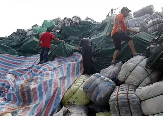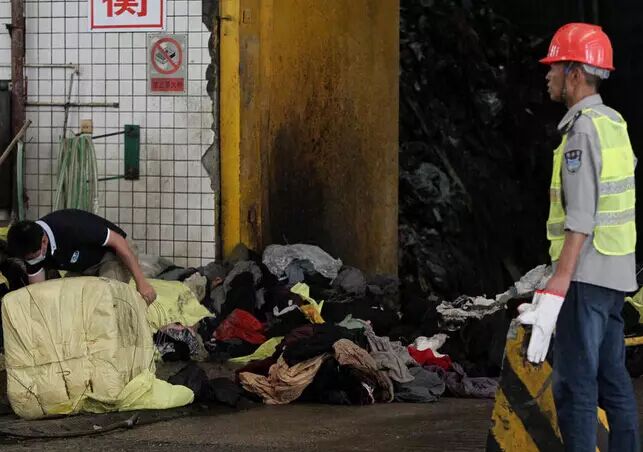 11月17日,深圳葵冲土洋码头,废旧衣物堆放在码头上,准备运往盐田垃圾焚烧发电厂进行销毁。当日,深圳海关在盐田、南山垃圾焚烧发电厂开展销毁走私废旧衣物行动,销毁进口走私废旧衣物1046吨。