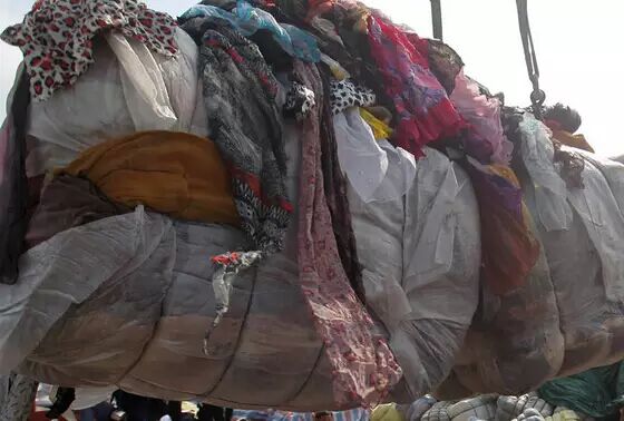 这些衣服烂糟糟地堆放成山,脏秽不堪,但流入市场前它们可能会被翻新,再重新挂上不知名的吊牌,就是一件新衣服了。