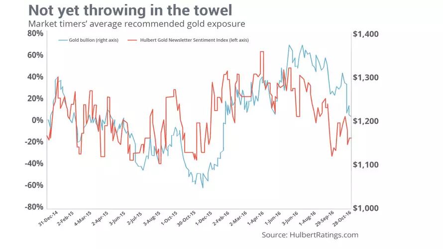 如果观察黄金投资通讯情绪指数(HGNSI)的走势,黄金市场还并没显现出彻底的绝望和悲观,该指数目前维持在-18%,这表明典型投资者把18%的资产组合下注看空黄金。