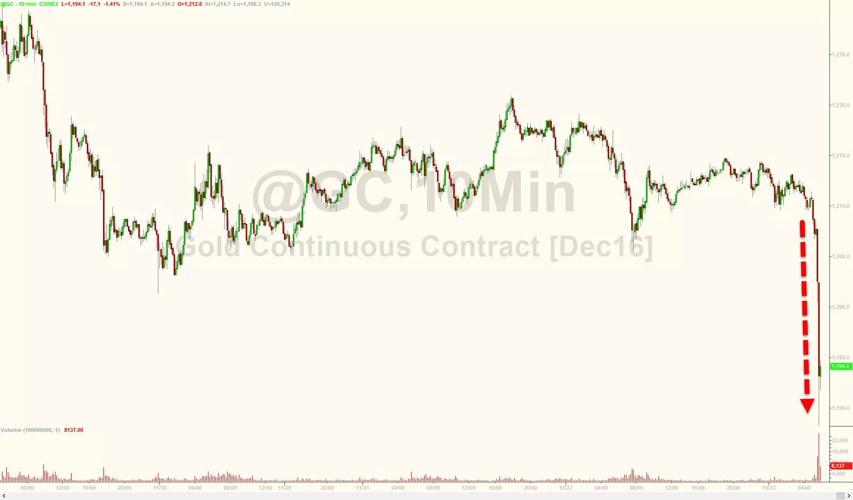 墙倒众人推,昨夜黄金市场遭遇大屠杀,60亿美元卖单引发黄金暴跌至1200美元下方。黄金一次性暴跌30美元,是买入还是继续等待?
