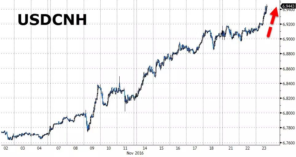 受此消息影响,美元指数大幅飙升,人民币持续贬值创新低,离岸人民币兑美元汇率击穿6.9,同时美债遭遇大幅抛售。