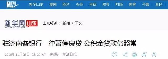 据新华网报道,28日,驻济各大银行突然集体下发紧急通知,即日起至30日,各分支机构全面暂停房贷业务,不管是几套房。公积金贷款不受影响。有的银行在通知中措辞严厉地表示:擅自放贷将追究责任。