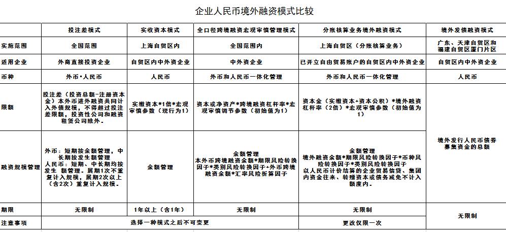 ▌投注差模式。该模式较适合资本金或净资产规模不大、能够获得融资期限较长且成本较低的境外人民币资金的外商投资企业采用。自贸区内的外商投资企业也可以采用该模式自境外借用人民币资金。外商投资企业向其股东、集团内关联企业和境外金融机构借入的人民币外债和外币外债合并计算总规模,且借款总规模不得超过外商投资企业的投资总额与注册资本的差额。需要注意是,外商投资成立的房地产企业和中资企业不适用该模式。