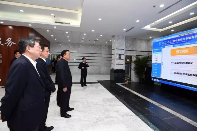 李克强点击鼠标,为上海自贸区启动一次“双随机”抽查 “保障食品安全大于天,我就选‘食品安全’监管这一栏。”李克强总理21日考察上海自贸区市场监督管理局时应邀点击鼠标,先随机抽取接受检查的27家食品企业,又随机抽取几十位执法人员,通过网上综合监管平台,启动一次“双随机”抽查。 李克强谈事中事后监管:相信人但更要相信制度 李克强21日考察上海自贸区市场监督管理局。该局将原工商、质监、食药监、价格监督检查职能合并为“四合一”网上综合执法平台,开展“双随机一公开”等市场监管。总理肯定这一用制度限制监管部门行政执法自由裁量权的探索。他说,相信人但更要相信制度。 李克强:市场越公平,市场主体就越有活力 李克强21日考察上海自贸区市场监管局。该局公共诉求处置信息平台将原来5条投诉热线整合为一,极大便利了群众和企业,3年来受理投诉量增加了近3倍。总理说,这一举措不仅强化了监管净化市场的功能,同时维护了市场公平。市场越公平,市场主体就越有活力。