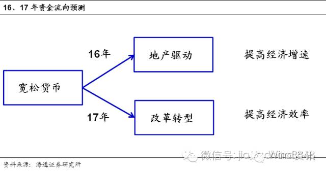 海通姜超指出,通胀配实物,通缩配金融。如果17年坚持地产调控不放松,那么通胀将只是短期现象,未来随着通胀的再度回落,资产配置也应该发生相应变化。在16年表现最好的是房地产和大宗商品,因为处于涨价的环境,实物资产最为受益。但如果未来通胀重新回落,那么实物类资产就失去了配置价值,因为不涨价实物资产就没有回报,而金融资产就成为配置首选。无论债券还是股票,前者有票息,后者有股息,都要好于实物类资产。
