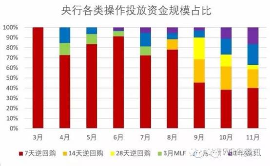 此外,央行还直接通过公开市场操作增加融资资金期限、提高融出资金利率。可以说,央行已经在货币市场进行了加息,而这种加息是隐性的加息。9月以来央行的货币政策倾向发生明显变化,表现为央行重启14天和28天逆回购,加大MLF长期限资金投放比重,导致央行投放资金的加权利率上行约20BP,加权期限上行约60天,防范“期限错配和流动性风险”的意图非常明显。