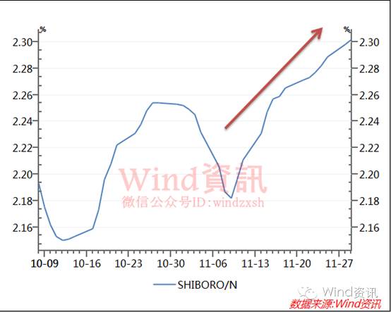 此外,Shibor利率已连续14天全线上扬。隔夜shibor涨0.40个基点报2.3020%,9月30日以来首次突破2.30%。