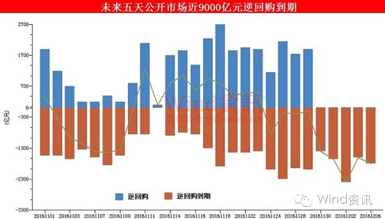 公开市场方面,央行已经连续4日净回笼,而市场还面临着1.4万亿逆回购余额压顶的境况。周二,央行公开市场进行1900亿逆回购,当日公开市场有2000亿逆回购到期,实现净回笼100亿。Wind资讯统计显示,截至11月29日,央行公开市场逆回购余额1.37万亿,且未来五天还将面临8850亿逆回购到期。市场分析,逆回购余额过高,且存量逆回购陆续到期,已加大央行公开市场滚动操作难度。机构称只要资金流出、央行不降准的格局未变,那么资金成本上升的趋势就很难改变。