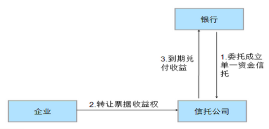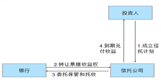 第二种方式:银行与信托公司以及持有票据的企业间达成相关票据资产(主要是银行承兑汇票)转让协议,银行委托信托公司以企业所持有的商业汇票为投资标的发起单一资金信托计划,银行以自有资金购买该信托计划。本模式计入银行资产负债表投资科目,不占用我行存贷比资源。
