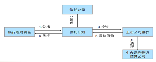 是指银行面向机构以及零售客户发行理财产品,将所募资金设立信托计划,按事先约定的投资计划和策略,投资特定企业所持有的上市公司股票的股权收益权。相关股票(一般为流通股)按照一定的折扣率质押给信托计划,到期由该企业或第三方以约定的溢价回购该部分股权收益权。
