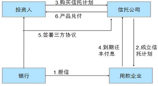 第二种方式:委托信托公司就该项目发起单一资金信托计划,银行与投资人、信托公司签署三方协议,约定如借款人到期不能及时还本付息,由银行到期购买投资人所持有的信托收益权。