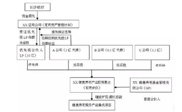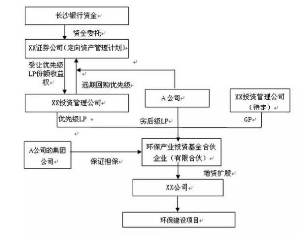 基金总规模15亿(暂定),其中A公司作为劣后级LP出资4.5亿元,长沙银行资金通过定向资管计划作为优先级LP出资10.5亿元,GP公司少量出资,A公司和长沙银行出资比例为3:7。首期出资金额为优先级1.6亿元,劣后级出资0.7亿元。
