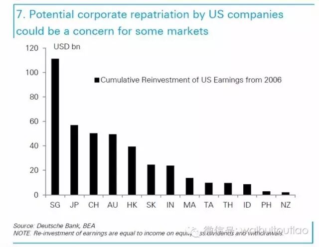 此外还有一项风险因素:一旦特朗普履行竞选期间关于改革税法的承诺,美国企业或将汇回放在亚洲市场的利润。德银策略师估算,单单新加坡就有1,000亿美元这样的资金,凸显了新加坡作为全世界企业资金部中心的地位。