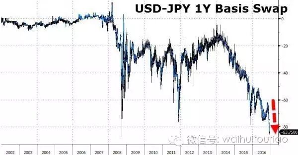 香港和日本均遭到冲击:6个月期港元Hibor已经飙升至2009年5月以来最高水平;美元-日元一年期基差互换已经于今日跌至纪录低点,对美元流动性的需求已经飙升至雷曼倒闭以来的最高水平。
