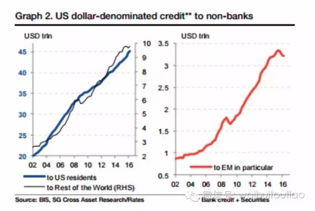 “这种借款人很多,”这家法国银行的分析师下结论称。“新兴市场国家和公司尤其热衷于借美元债(规模达到3.2万亿美元)。”