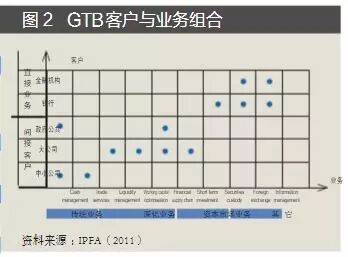 6. GTB与其他银行业务相比更难定位和定义。由于战略、组织结构、市场份额等因素不同,GTB在银行间定位与功能差异较大。该业务也因 此而更有可能成为银行体现其核心竞争力的重要领域。
