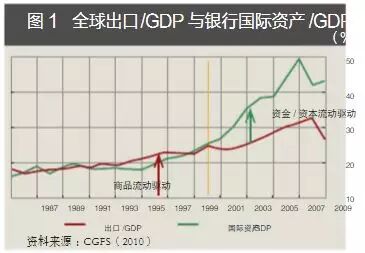 (2)近10年来,国际经济从贸易主导向直接投资及金融投资转化。银行国际资产与商品流动、实体经济间的关系渐行渐远,而更多受到资金、资本、金融资产流动驱动(见图1),驱使银行业更加注重对商品、资金、资本/金融资产流提供综合服务。