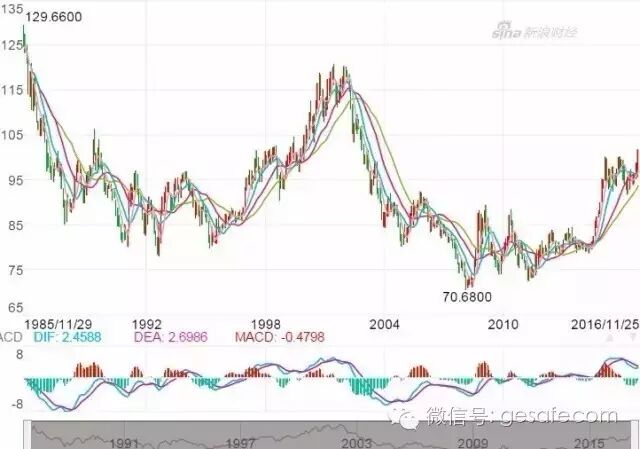 1995年-2001年,软件和互联网革命爆发,微软视窗95上市,雅虎上市,宽带基础设施大量投资,纳斯达克市场大繁荣,六年间美元升值了45%。