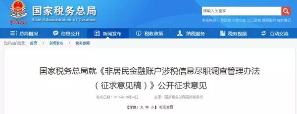 话说被很多人关注的境外账户披露以及金融账户信息交换的具体办法近期浮出水面——国税总局明年起将施行非居民金融账户涉税信息尽职调查,严查