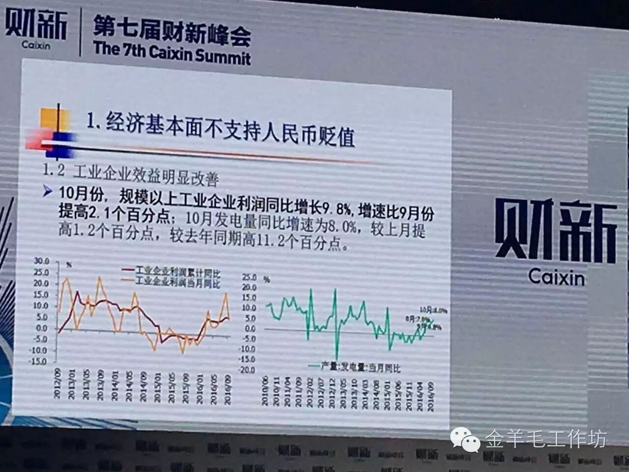 第一个问题,经济基本面不支持人民币贬值,我讲几个主要的,请大家看PPI规模以上工业增加值,PPI已经50几个月负增长了,但是9月份已经由负转正,规模以上增加值同比都是6.1%,比去年同期高0.5个百分点。我们今年最困难的是7月份,11月的指标出来之后,各项指标又比10月份略微好一点点。