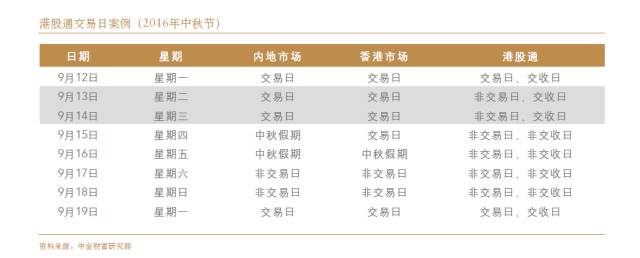 (2) 由于香港采用“T+2”的证券和资金交收制度以及“T+1”的券商风控资金交收制度,因此如果境内放假香港不放假,为避免境内放假期间造成资金交收违约,境内放假前两天不作为港股通交易日。
