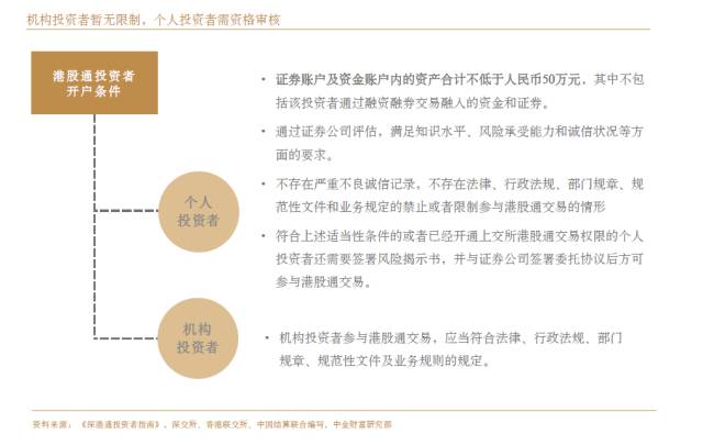 中国证监会相关负责人此前表示,港股通投资者仅限于机构投资者及证券账户、资金账户余额合计不低于50万元的个人投资者。