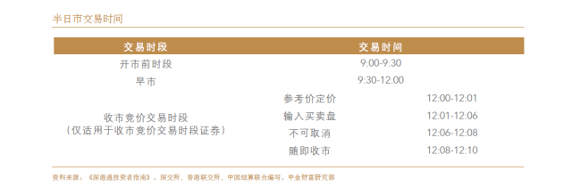 (3) 香港市场的半天交易时间,港股通和香港保持一致,交易半天,但为非交收日。