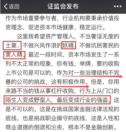 证监会主席喊话:土豪、妖精和害人精昨天还叫人家小甜甜,今天就成小妖精…12月3日,证监会主席刘士余在中基协第二届会员大会上的致辞一石激起