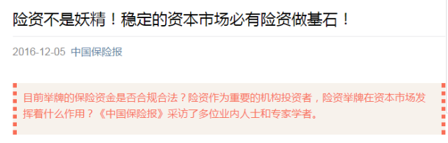 刚刚,中国保险报发文:险资不是妖精!