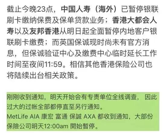 一夜之间,整个金融圈和媒体圈都被一则有关“银联停止内地客户在港刷银联卡缴纳保费”的消息刷屏。