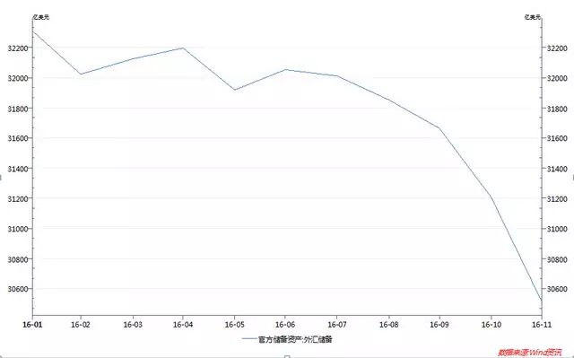 12月7日央行公布11月外汇储备数据,截至2016年11月30日,我国外汇储备规模为3.05万亿美元,较10月底下降691亿美元,降幅为2.2%。这是外汇储备连续第五个月规模减少,并创今年1月以来最大降幅,1月降幅为995亿美元。