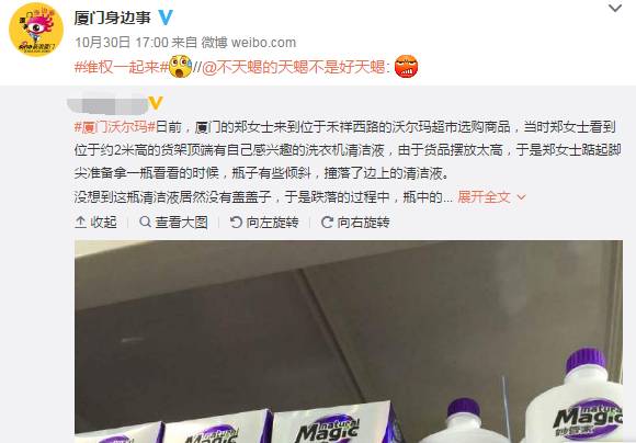微博称:超市没有表现出一丝愧疚,反而对医院检验的结果表示怀疑,并且,拒绝郑女士提出查看商城监控的要求,声称货架附近的监控全为虚设。