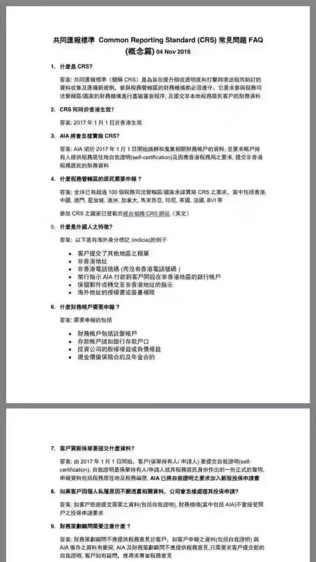 内地客户刷卡购买香港保险再受限 消息一步步被证实,据香港媒体报道,继银联国际宣布落闸,叫停内地客以银联卡缴付境外投资性质寿险保费后,银行界消息证实:两大卡公司visa和万事达已知会相关银行,自本周六起不接受内地客户以visa和万事达卡缴付保费。 国家外汇管理局7日发布的数据显示,截至2016年11月30日,我国外汇储备规模为30516亿美元,较10月底下降691亿美元,降幅为2.2%。这一数据为连续第五个月下降,且再创今年1月以来最大单月降幅。 回归理性,其实刷卡缴付保费只是对于首期保费非常便利,内地客户的续保通常都是不会再来香港刷卡,而且续保刷卡手续费还是比较贵的。所以,续保缴付保费的问题,还是需要解决的。那么,我们还可以用什么方式缴费保费呢?(包括首期保费和续保保费)。 1,Cash现金 海关总署允许随身携带现金,每人每次限额5000美元;现金缴费也有限额,友邦15000美元,保诚8000美元等,小额单可直接用现金解决。 2,香港银行本票 需要开通香港账户(国内或香港开通香港本地账户),美元/港元,银行账户有足额资金,银行购买,不记名)(银行本票需有银行发出收据(或者称底单),显示付款人户口) 3,Cheque香港银行 美元/港元,资金后期存入账户,记名,显示账户持有人名字 4,电汇Bankdraft汇票 电汇至保险公司账户,大陆账户人民币电汇(5万美元外汇额度),不一定银行支持;香港账户美元或港元电汇,无外汇额度限制;电汇备注要写明1,保单号码2,客户中文和拼音名字,3,缴费金额 明年起赴港买保险需内地税号 AIA友邦保险一份关于CRS的内部资料显示,从2017年1月1日开始,客户购买新保单需要提供自我证明,自我证明是保单持有人或者申请人就其税务居民身份作出一份正式的声明,申报资料包括税务居住地及税务编号,AIA已将自我证明的要求加入新版投保申请书,如果客户不能提交相关税务信息,则不接受投保申请。