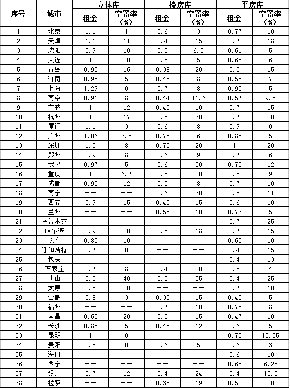 注:表中“——”表示不掌握仓库租金和空置情况。