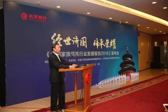 12月8日,北京银行联合北京信托与中国社会科学院金融研究所财富管理研究中心、中央财经大学中国银行业研究中心合作发布了《中国家族信托行业发展报告(2016)》。这是国内首份权威的家族信托行业研究报告。报告预测,羽翼渐丰的中国家族信托市场将在财富管理大格局中振翅高飞。中国社会科学院学部委员、国家金融与发展实验室理事长李扬,中国银行业协会党委书记、专职副会长潘光伟,中央财经大学校长王广谦,中国信托业协会等相关机构专家学者出席发布会。