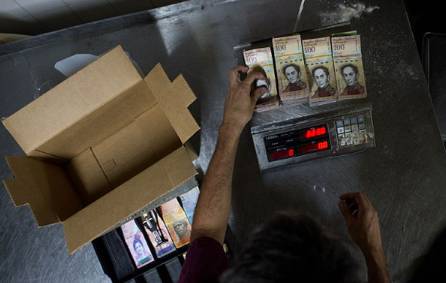 受国际油价下跌和经济政策失衡影响,委内瑞拉面临严重通货膨胀和货币贬值。目前100玻利瓦尔在黑市上约合2美分。据报道,政府疯狂印钞加速了货币贬值的速度,国内超市结账收款不再是点钞而是称重钞票,中产阶级也被迫上街拾荒,形势十分严峻。