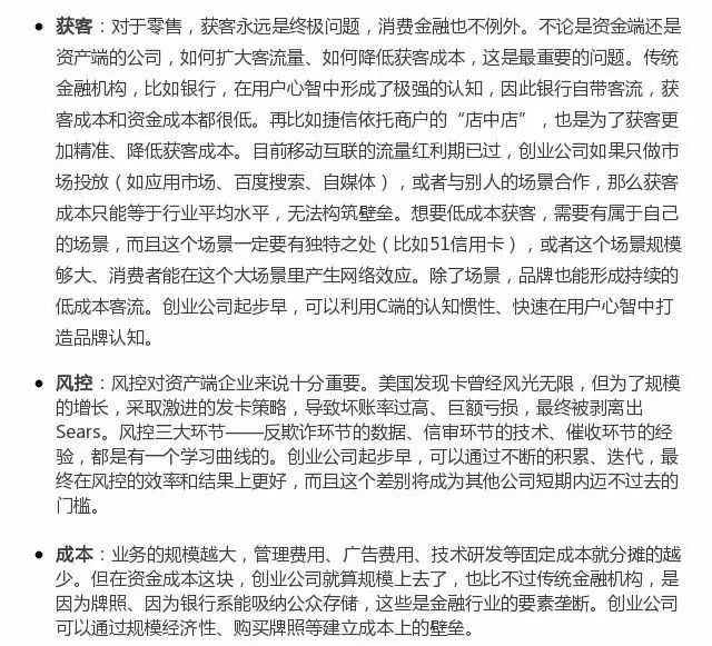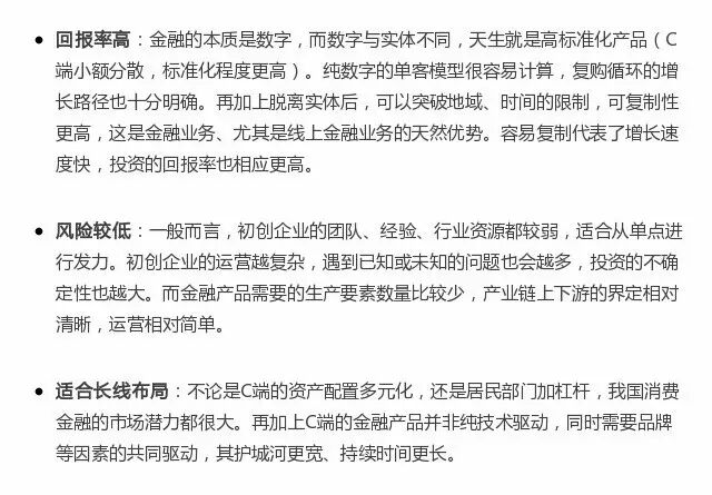 为什么要投资消费金融?消费金融是一门回报率高、风险较低、适合长线布局的好生意,这是下注消费金融的三点初衷。企业的具体业务形态不一定都