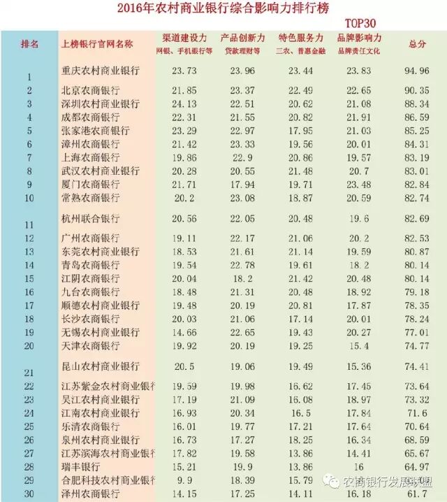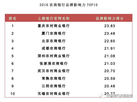 重磅丨2016年农商银行综合影响力排行榜正式发布