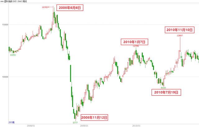 最后,再回顾下棉花,可谓上轮商品牛市中最耀眼的明星,直到今日很多人说起来依然就像发生在昨天,如果说从2008年见底到2010年11月见顶,两年时间最大涨幅逾230%,但最精彩的部分发生于2010年8月底至11月初的两个多月时间里,从不足18000起步,一路飙升至33000的历史高位,造就了期货市场里的多个传奇。