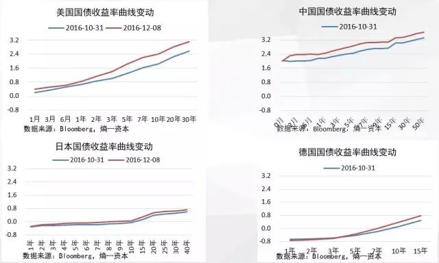 形成这一现象的原因其实并不难理解,我们可以从过往数据中看到,今年10月以后,美国利率有了一定幅度的提升,而对应的国债收益曲线也在11月份开始变得陡峭起来。关于基准利率和国债收益曲线的关系,谢东海先生也给出了具体的解释:收益曲线非常重要,因为它代表的是基准利率的变动,所有的资产配置都是在基准利率上叠加不同的风险偏好和风险溢价。