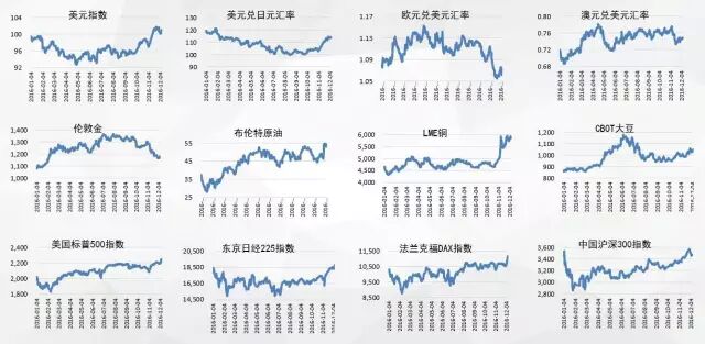 2016年在美联储加息政策的配合下美元逐步走强,与此同时,大宗商品也在走强、黄金价格出现下跌、各国股市开始走强,这其中一连串的传导反应似乎出现了和我们所熟知的影响逻辑不相匹配的地方,但将这些放回到同一个主题下去观察就会发现,大类资产价格的变动恰恰是在同一个预期之下达成的——美国利率会持续上升。而支撑美国利率上升背后的因素就是对美国通胀预期的加强。