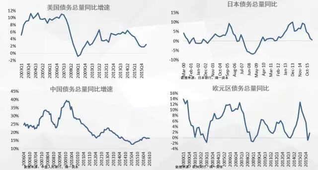 在下图中我们可以看到美国和中国的信用扩张开始出现恢复的苗头,而日本和欧元则没有,这也从一个侧面解释了为什么2016到2017年中美两国利率发生通胀,但日本和欧元区却没有。就此来讲,中美利率是有利于上升的,但不得不说中国货币政策是否在这种背景下具有提升利率的能力尚待考证。因此,很有可能会形成只有美国一个地方政策利率上升的情景。