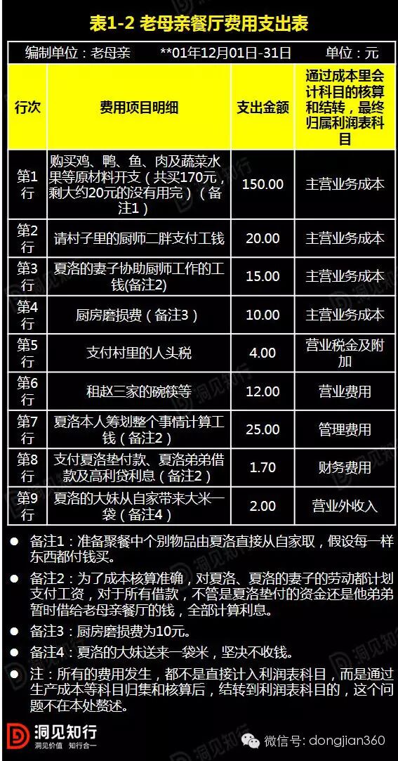 这顿饭后,夏洛要给老母亲一个交代:花了多少钱,除了老母亲给的100元钱外其余的钱是怎么筹备的,做了哪几个菜,大家吃饱了没有。老母亲是否满意等。这就是财务报表。