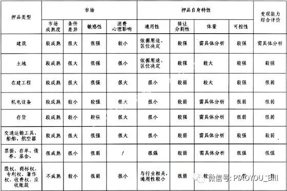 这些押品变现能力的相关影响因素分析如下表所示: