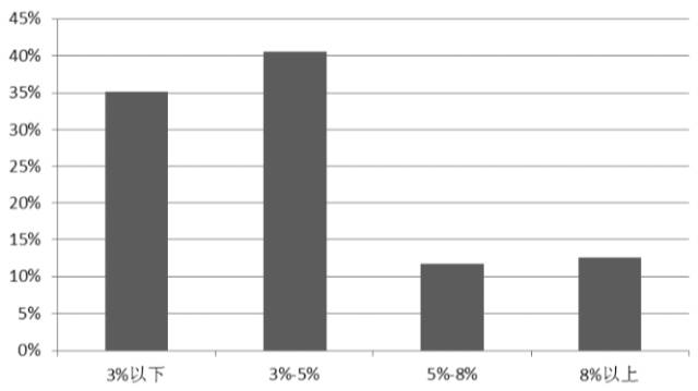 图11、受访者所在地区银行类金融机构不良率最高普遍在3%以上