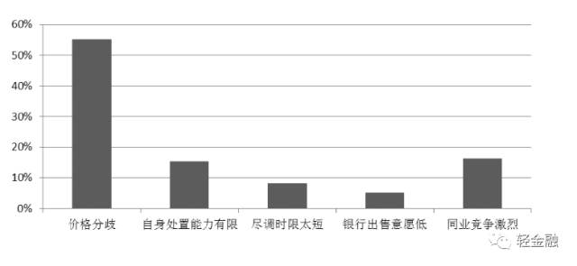 图20、2016年不良资产处置难度:处置持续困难,市场不活跃是首要原因